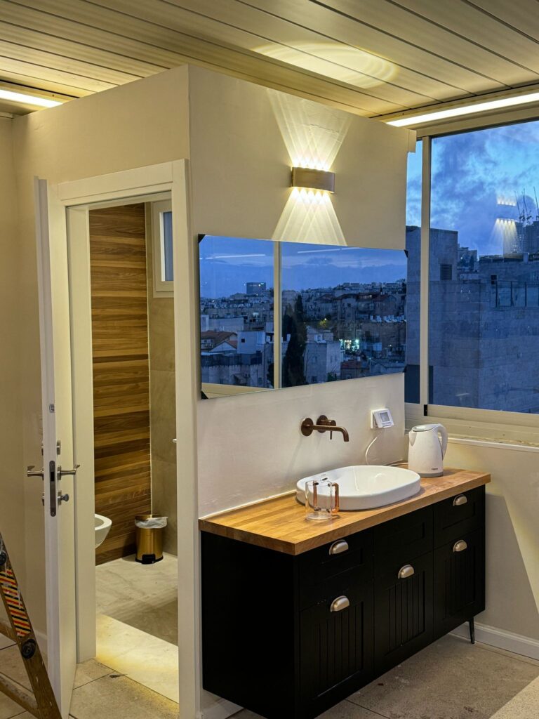 הריסה ובנייה מחדש של חדרי אמבטיה תוך הקפדה על איטום אינסטלציה ריצוף ועיצוב מודרני.